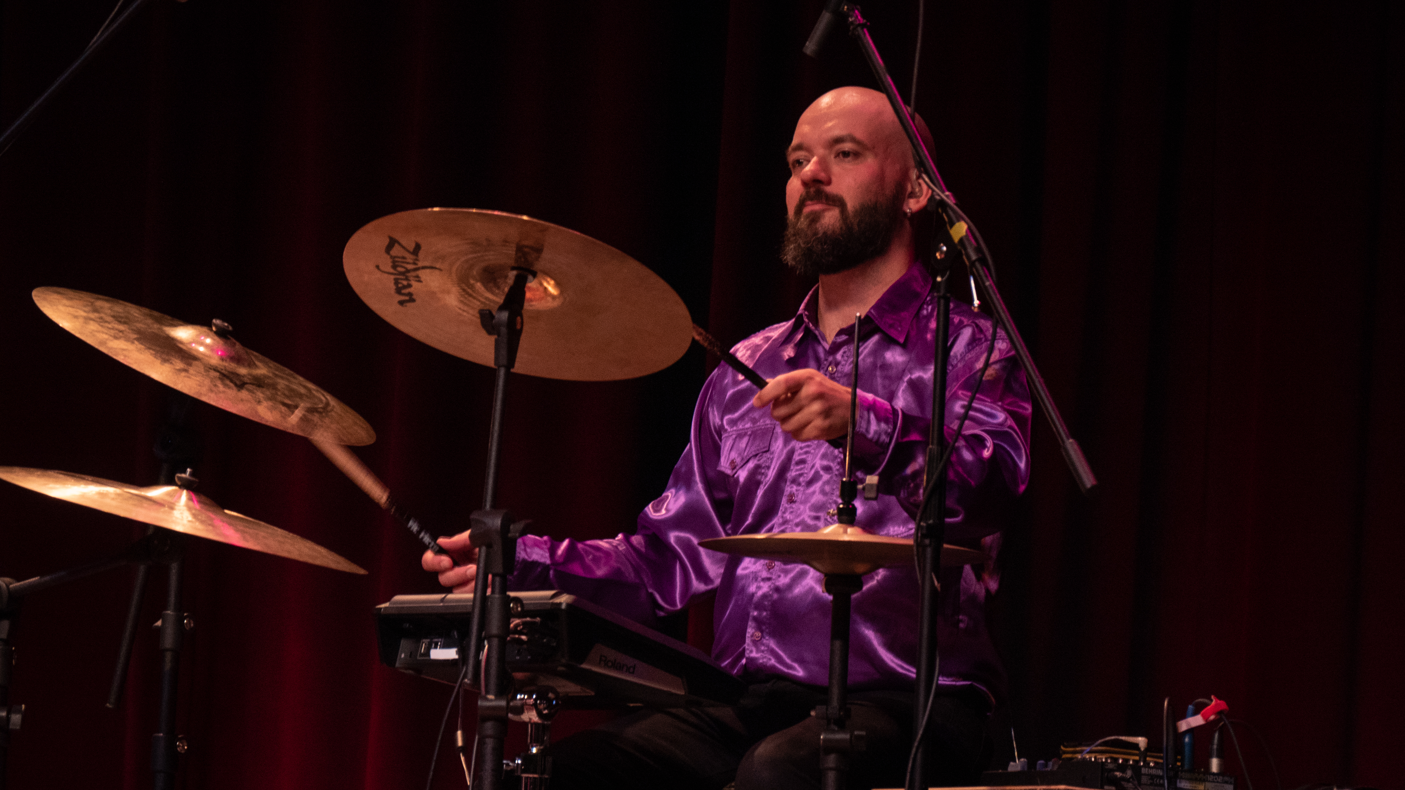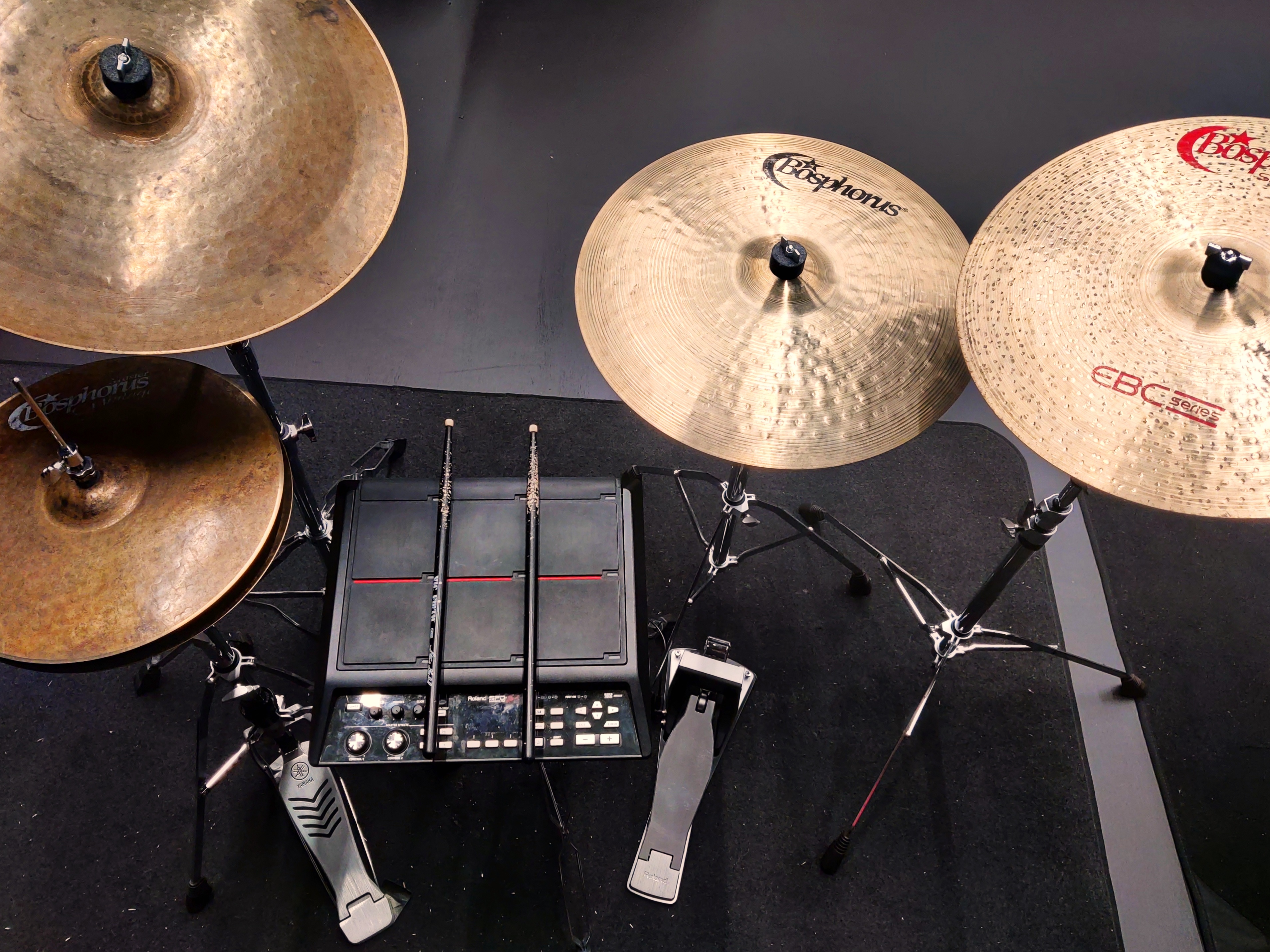 I suppose percussions are the oldest instruments in the world and have always been played all around the world. I started playing a drum set as a kid and later expanded to different percussion from various cultures such as Finnish, Celtic, Latin American and West African. In Okra Playground I play electric percussion and acoustic cymbals. This setup has all the sounds I need in a very compact size. It’s a great setup for travelling abroad.
